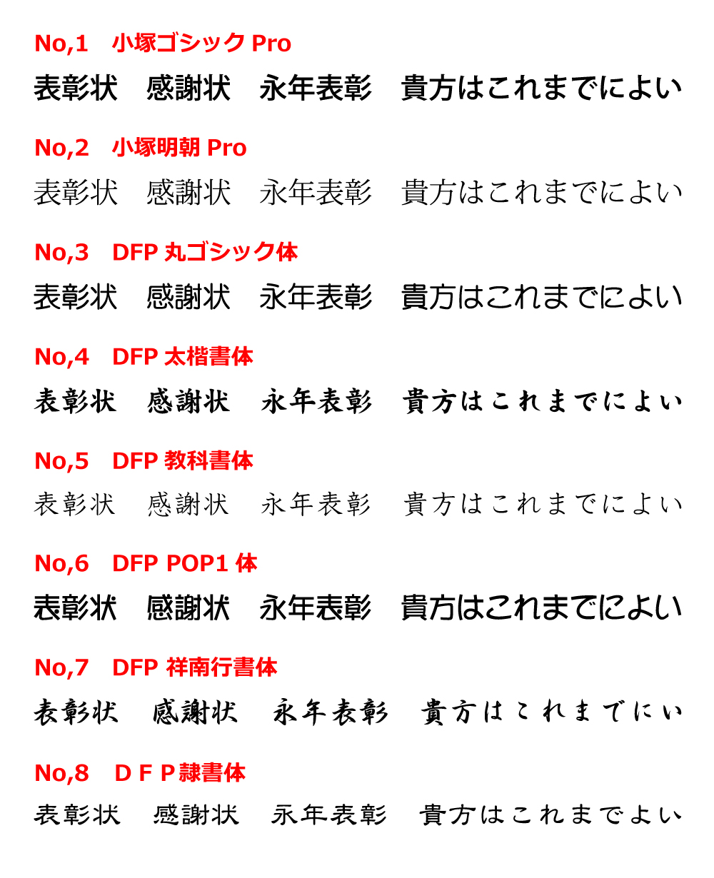 - お好きなフォントを下記からお選びいただけます。